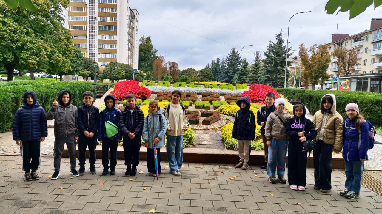 «Осенний Нальчик: погружение в прошлое и настоящее» - так называлась экскурсия, организованная 27 сентября для обучающихся объединения «Юные туристы-краеведы» на базе школы №20 г.о. Нальчик. В этот день участники объединения отправились в увлекательное путешествие по историческому центру города и Атажукинскому саду. Экскурсионная программа, организованная педагогом дополнительного образования Дворца творчества детей и молодёжи Зульфией Отаровой, позволила ребятам не только познакомиться с архитектурными памятниками и достопримечательностями города, но и насладиться неповторимой красотой осеннего Нальчика. Такие путешествия превращают обучение в захватывающее путешествие и способствуют всестороннему развитию детей: