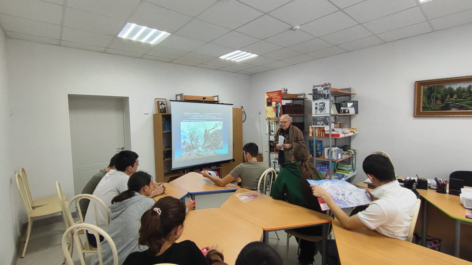 Юные туристы-краеведы под руководством педагога Дворца творчества детей и молодежи Зульфии Отаровой приняли участие в просветительском проекте «НЕурок географии» Русского географического общества. 17 сентября на площадке Специальной (коррекционной) школы-интернат №1» Минпросвещения КБР был организован кинопоказ фильма «Географы – Великой Победе!». Ребята узнали о роли географии в годы войны, посмотрели редкие кадры и обсудили увиденное. Почетный гость, ветеран спорта, заслуженный работник и почетный наставник физической культуры и спорта КБР Владимир Миновский рассказал о битве за Кавказ и самом высокогорном участке войны – Приэльбрусье. Он также познакомил учащихся с биографией и творчеством художников-фронтовиков КБР: Ваннаха М.А, Сундукова А.М. и Ткаченко А.Л. Так в нестандартной и увлекательной форме школьники узнали больше об истории и географии нашей страны и родного края. | |