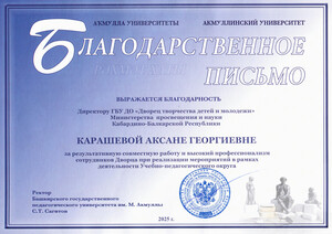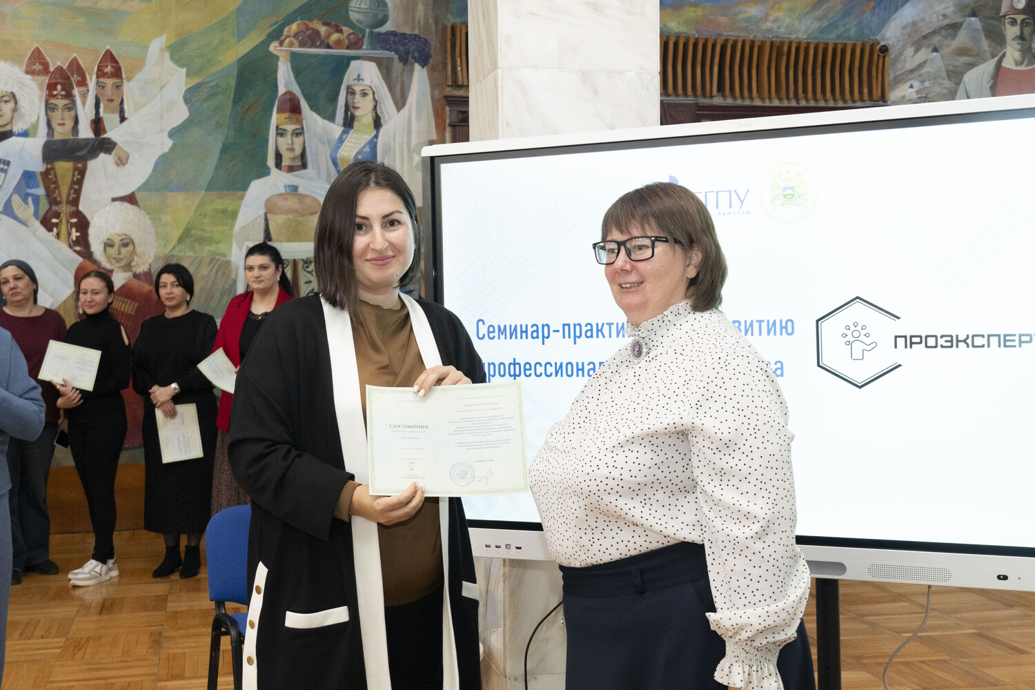 16 октября на базе Дворца творчества детей и молодёжи Минпросвещения КБР прошёл семинар-практикум «ПроЭксперт», направленный на развитие профессионального мастерства педагогов. Организатором мероприятия выступил институт непрерывного профессионального образования «Вектор развития» Акмуллинского университета Республики Башкортостан. За результативную совместную работу и высокий профессионализм сотрудников Дворца при реализации мероприятий в рамках деятельности Учебно-педагогического округа директору Дворца творчества детей и молодёжи Аксане Карашевой была вручена благодарность от Башкирского государственного педагогического университета им. М. Акумуллы. Участниками семинара стали заместители директоров, методисты и педагоги учреждений дополнительного образования. Программа семинара включала комплекс образовательных мероприятий: Теоретические лекции: